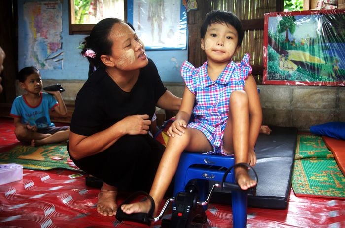 "Nous avons fui la Birmanie il y a neuf ans, juste avant la naissance de Julia. J’étais complètement bouleversée et horrifiée à l’idée d’aller vivre dans un camp de réfugiés. Aujourd’hui, je suis soulagée d’être ici. Julia n’aurait jamais bénéficié de soins de réadaptation de cette qualité en Birmanie. Nous essayons de voir les choses du bon côté. Et je fais un peu de couture, pour gagner de l'argent."