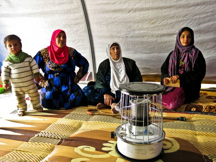 Reema demande à sa petite fille d’allumer le poële, pour essayer de réchauffer un peu la tente. Dehors, le vent souffle alors que Reema se livre aux professionnels de l’association. "Nous venons de vivre plus de deux ans d’horreur", raconte-t-elle tristement. "Pas un jour ne s’est écoulé, au cours des deux dernières années, sans que je n’ai pleuré. Ici, il fait très froid, surtout la nuit. Mais au moins, la peur nous a quitté." Reema raconte aussi sa fuite et comment, il y a quelques semaines, elle est arrivée dans ce camp. "Cela a été très dur", explique-t-elle. "Nous sommes partis à pieds. Mes enfants et petits-enfants me poussaient à tour de rôle, dans mon fauteuil roulant. Dhoha est constamment avec moi, elle m’aide énormément", ajoute-t-elle en regardant tendrement sa petite fille. "Ca me fait plaisir de le faire, grand-mère", répond l’adolescente.