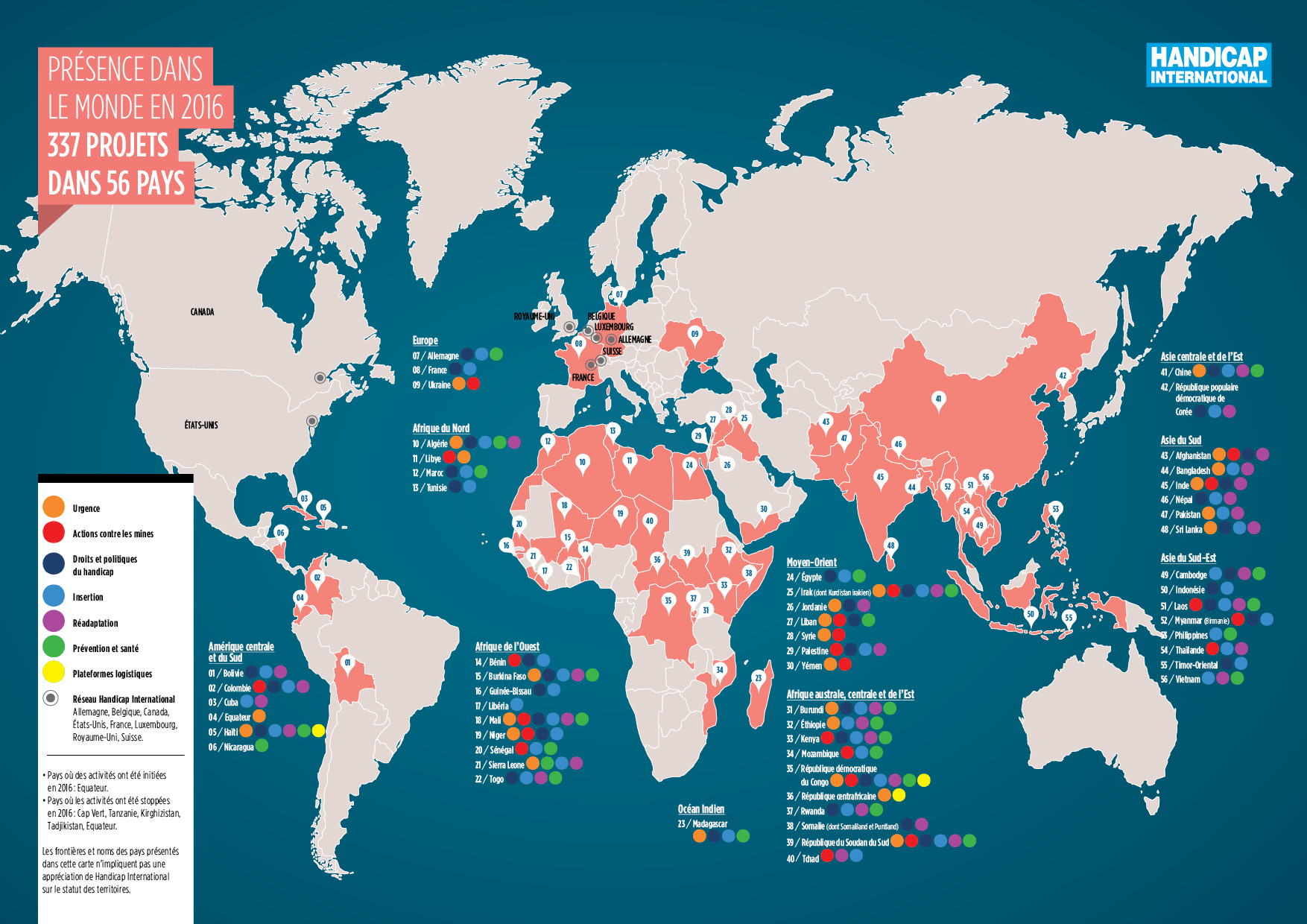 Nous vous laissons apprécier plus en détail notre travail à travers ce rapport d’activité. Il dresse le bilan 2016 de nos actions dans le monde en faveur des personnes handicapées et vulnérables.